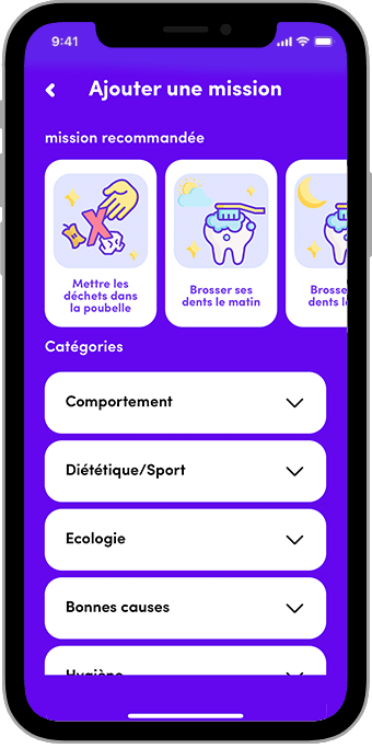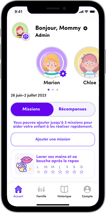 Chaque famille et chaque enfant est unique. Câest pourquoi notre programme propose une liste de missions et de comportements positifs adaptĂ©s aux enfants de 4 Ă 12 ans. Vous pouvez Ă©galement personnaliser cette liste en fonction des besoins de votre famille et du niveau d'autonomie de votre enfant.
